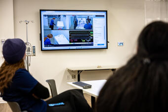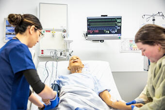 The Nursing Simulation Center's high-fidelity manikins can do everything a human can do—except walk. They breathe, speak, sweat and bleed. If a student makes a decision that isn’t clinically sound, the consequences like a sudden blood pressure drop can be simulated.